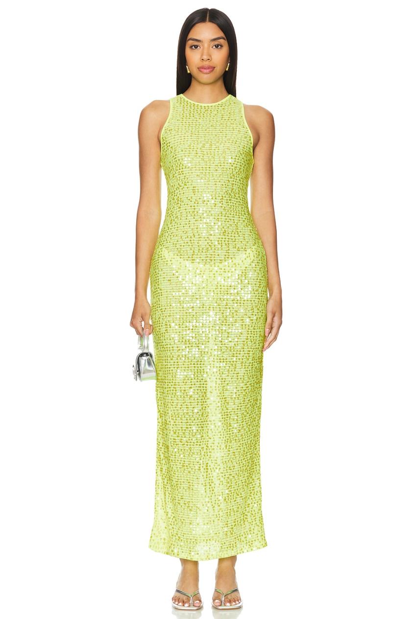 Damen-Badeanzüge & Strandkleider | Lovers + Friends Erin Pailletten-Maxikleid, limettengrün