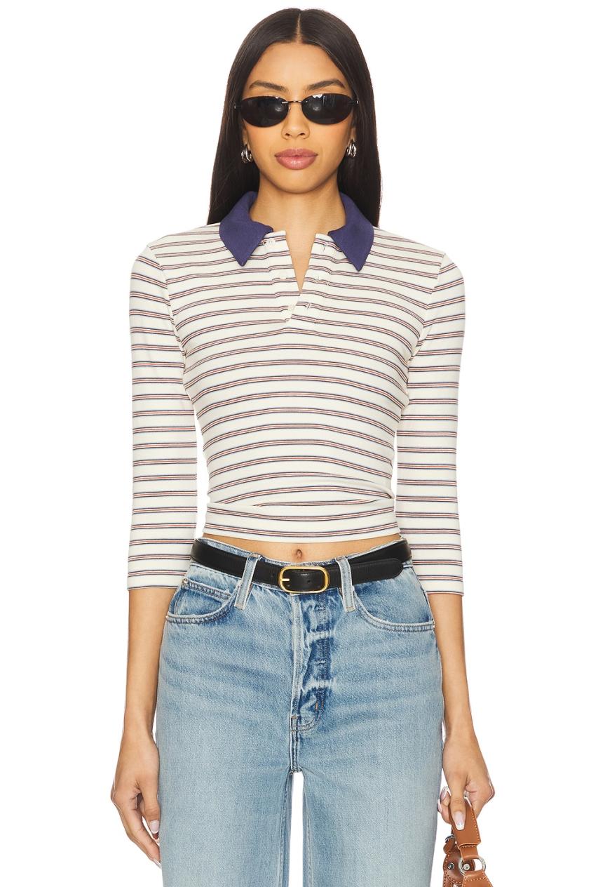 Damenoberteile | Lovers + Friends Dafne Polo-Top, Elfenbein, mehrfarbig gestreift