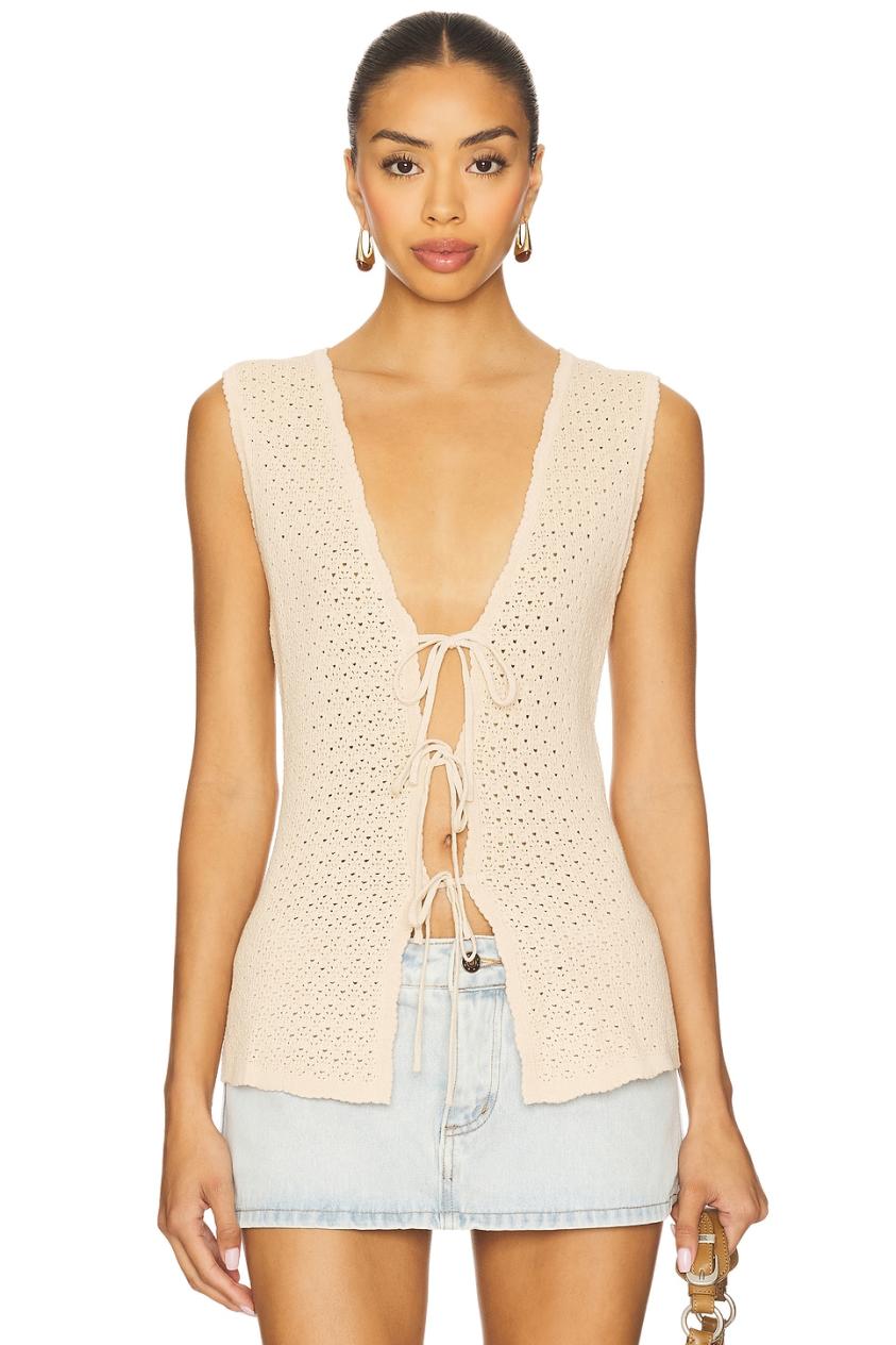 Damenoberteile | Lovers + Friends Lizzy Weste mit Bindeband vorne, Beige