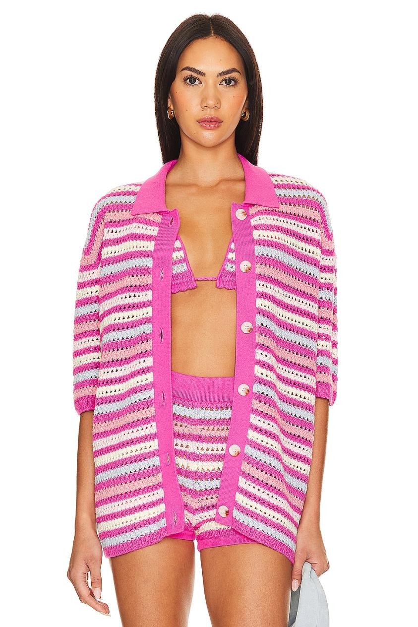 러버스 앤 프렌즈 루시아 카디건(핑크 & 블루 멀티)을 소개합니다. 여름 옷장에 센스 있고 다재다능한 아이템입니다. 크로셰 원단으로 제작된 이 카디건은 어떤 옷차림에도 보헤미안 감성을 더해줍니다. 완벽한 여름 코디 세트로 디자인되었으며, 같은 디자인의 하의와 함께 매치하여 멋진 바캉스룩을 완성하세요.